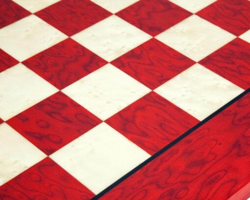 L’échiquier en bois d’érable rouge est un produit de qualité supérieure et intemporel qui complétera parfaitement votre collection d’échiquier. Fabriqué en Europe avec des matériaux de haute qualité, il est disponible en deux tailles : 42 x 42 x 1,5 cm et 51 x 51 x 1,8 cm, avec des cases de 4 et 5 cm respectivement. Son fini brillant et fait à la main lui donne une touche exceptionnelle, et tous les détails sont soigneusement moulés pour vous offrir une pièce unique. Cet échiquier en bois d’érable rouge est parfait pour ceux qui cherchent à ajouter une touche d’élégance et de sophistication à leur collection. Vous allez adorer la façon dont il s’intègre à votre décor et apportera une note raffinée à votre jeu. Créez des souvenirs inoubliables